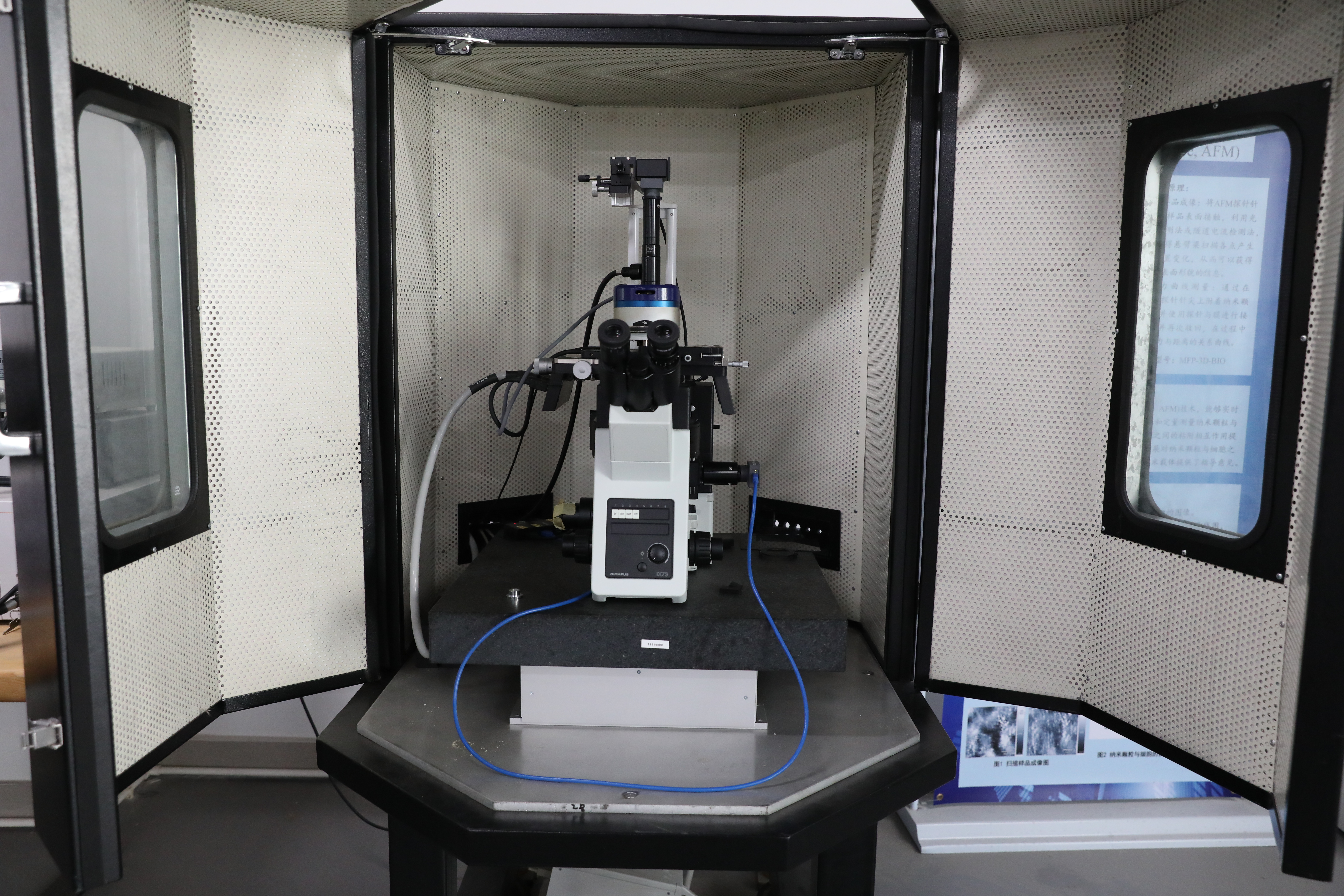 3.样品最大尺寸直径不≥80mm,样品最大厚度≥10mm,可以在AFM扫描同时利用倒置光学显微镜观察样品。