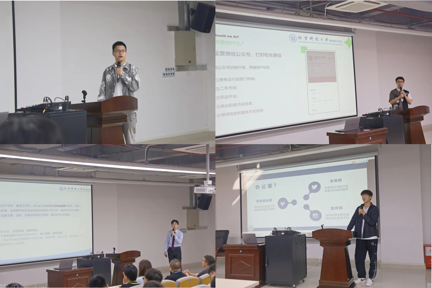 接下来,四位当选的主席团成员展示了未来一年所负责部门的工作规划。他们表示将为员工提供更好的服务,办好顺德研究生院的特色文体活动,并利用好大湾区的企业资源和科技优势,打造出一个具有竞争力的顺德研究生院品牌。