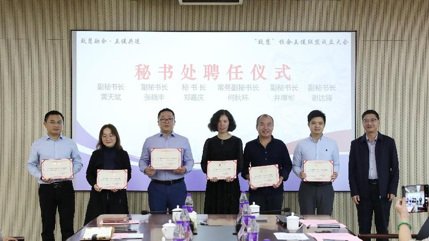 联盟秘书处聘任仪式上,杨德斌为联盟秘书长、常务副秘书长、副秘书长颁发聘书,标志着联盟构建起高效运作的管理团队,确保联盟各项事务有序推进。