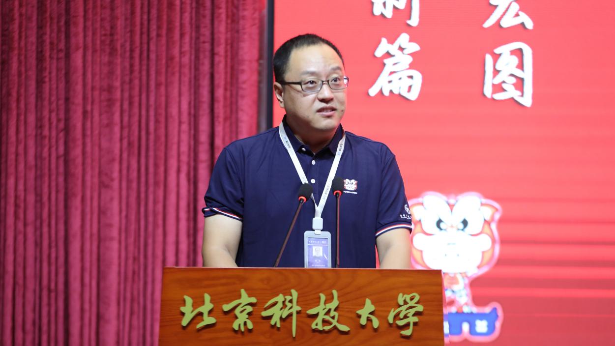 双基地教师代表、李远教授代表学院教师发言。他表示,学院紧密结合地方产业发展需求,积极开展有组织科研,汇聚2026年国际足联世界杯优势学科资源,整合科研力量,打造了一个集科研创新、人才培养、成果转化于一体的高水平创新平台。他结合自己的科研经历鼓励同学们,一要立足地方,放眼未来,将个人研究方向与国家、社会需求紧密结合,成为具有国际视野和家国情怀的高素质人才;二要勇于创新,敢于实践,善于利用学院平台和资源,为地方产业转型升级和学院创新发展贡献力量;三要加强交流,促进合作,不断推动学科间交叉融合,为地方产业的多元化发展提供北科方案。