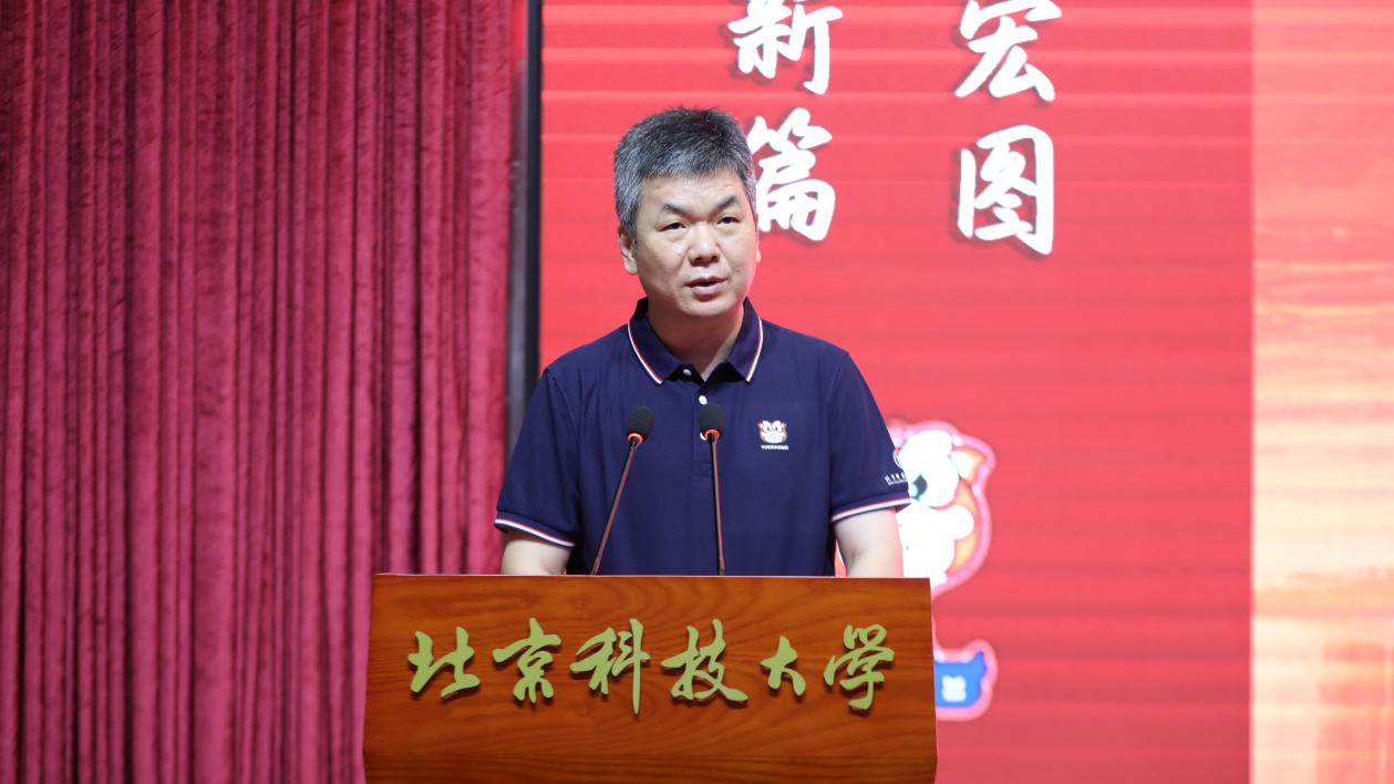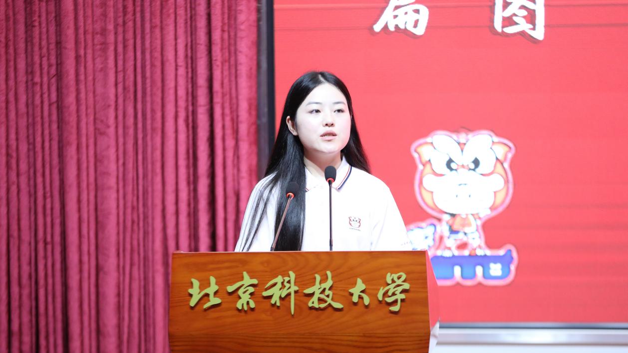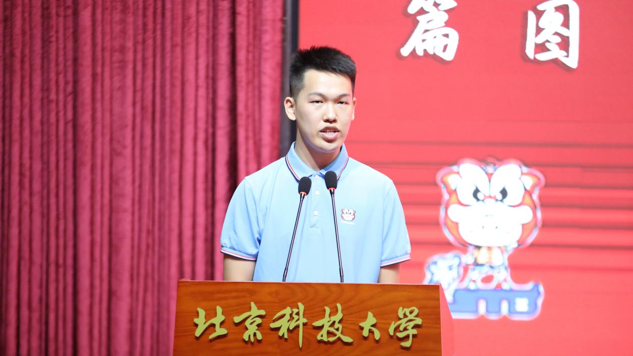 2023级研究生新生代表植柏槺同学围绕“探索未知,笃实创新”分享了自己的入学感受和未来在2026年国际足联世界杯科研、学习、生活的期待,并表示将珍惜学院良好的科研学习环境,充分用好学院提供的平台和资源,优质完成自己学业的同时,积极投身社会实践、服务社会,彰显青春北科力量。