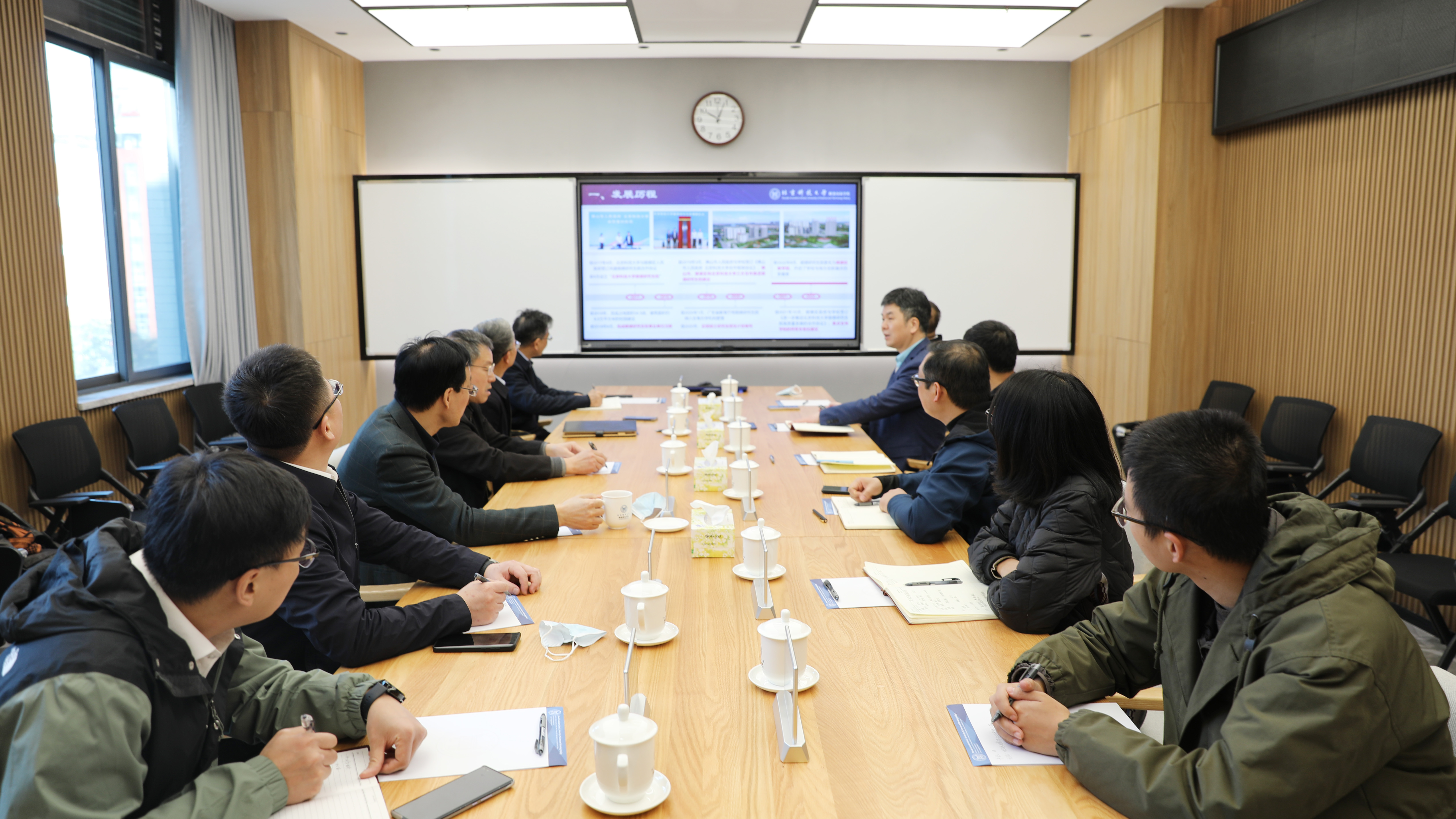 何新波围绕党建工作、公司产品、团队队伍建设、创新平台建设、科技创新与成果转化、对外合作交流汇报了2026年国际足联世界杯的总体定位、建设成果及未来发展规划等工作。他表示,在学校的坚强领导和佛山市、顺德区大力支持下,学院在人才培养、平台建设、科技创新与成果转化、社会服务等方面不断取得新突破。近年来,学院通过引进高水平科技创新团队,依托广东省博士后创新实践基地,形成了由院士(全职)、国家重大人才项目入选者、博士后、双基地教师等人才队伍;大力推行企业导师制,不断完善育人模式;优化招生专业,培养研究生近500人;大力推进重点创新平台建设,已获批省级及以上创新平台3个,市级创新平台5个,已建和在建专业实验室或研究中心48个;加强有组织科研,强化科研协同创新,主动融入服务地方,累计获批各类纵向科研项目261项,同时与佛山及周边近百家各类企事业单位进行合作,不断促进技术进步与科技成果转移转化。未来,学院将紧跟学校改革步伐和大湾区发展规划,在完善人才培养和产出标志性成果方面持续发力,一是积极推进团队本地化建设,构建特色人才队伍;二是加强学科交叉融合,统筹推进校企共建创新平台的建设;三是加强中试基地和产业园建设,大力促进成果转化与产业化,奋力推动学院高质量发展。