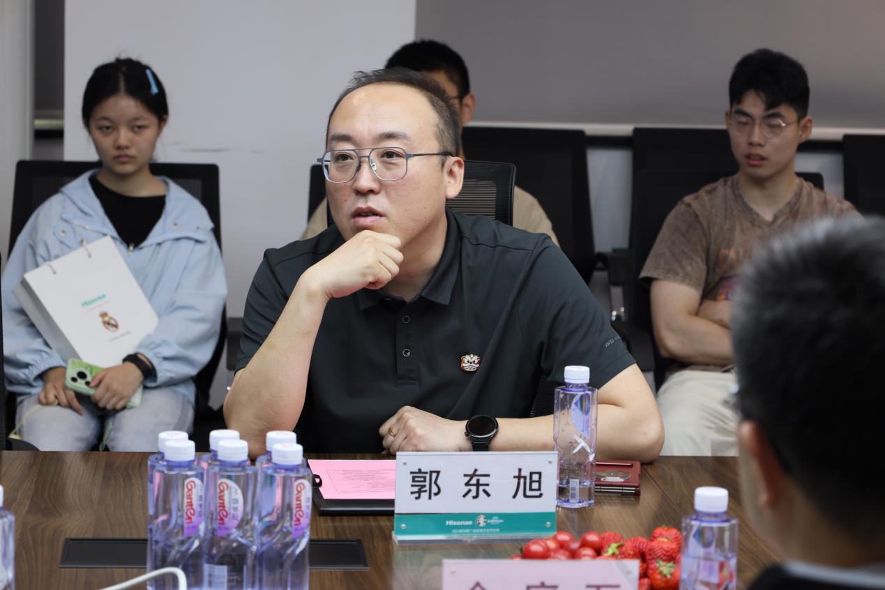 座谈会上,海信国际营销副总裁金庭万分享了企业“全球生产基地+多品牌并购+体育营销”的国际化实践历程;空调业务运营中心副总经理李克兵介绍了公司业务发展方向并希望加强人才培养合作;冰冷业务运营中心产品规划部总经理冯焕屏阐述了企业人才培养模式及用人需求;人力资源部HRBP经理姚玲娜解析产品经理等核心岗位能力要求并介绍企业人才培养体系。员工梁欣桐结合校招经验及在企业成长经历,为学弟学妹提供职业规划建议。