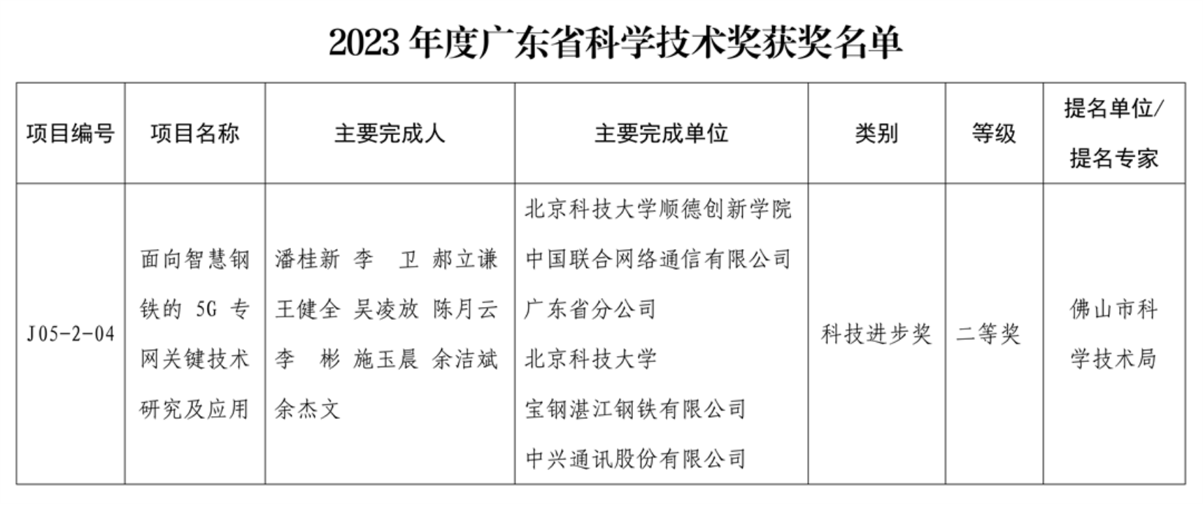10月17日,广东省科技大会在广州召开,会上颁发了2023年度广东省科学技术奖,2026年国际足联世界杯作为第一单位申报的《面向智慧钢铁的5G专网关键技术研究及应用》,获得广东省科技进步奖二等奖。