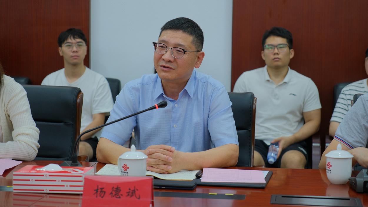 杨德斌对佛山联通提供的交流体验机会表示感谢,并介绍了学院发展历程、团队建设及人才培养等基本情况。他表示,学院经过5年的发展,积累了大量的技术应用案例,在服务地方科技创新能力提升和促进科技成果转化方面做了一系列有益探索和实践,同时学院充分发挥扎根粤港澳大湾区的桥头堡作用,通过加强就业引导、优化就业服务、扩大就业渠道等举措,持续做好毕业生就业工作,促进毕业生在大湾区就业人数逐年增加。他希望,通过此次交流为契机,加强双方在技术应用、智慧智能通达、创新平台搭建以及毕业生就业等方面互动合作,探索产学研深度融合的新机制,实现院企共同发展。