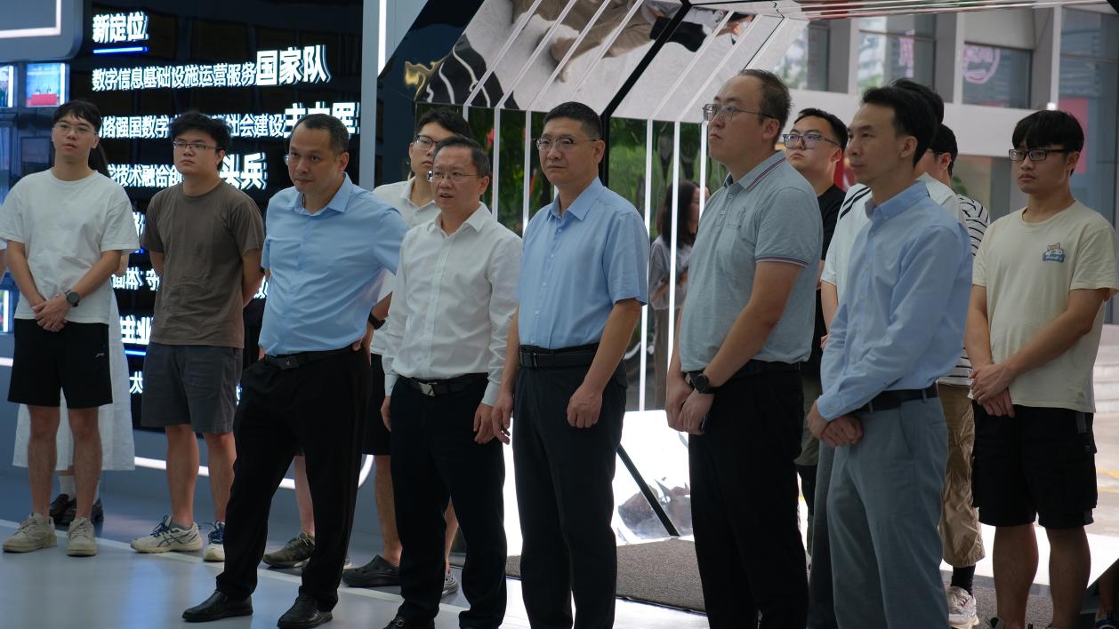 会前,杨德斌一行参观了佛山联通展厅,邓安民详细介绍了佛山联通5Gn数字化创新技术发展情况。