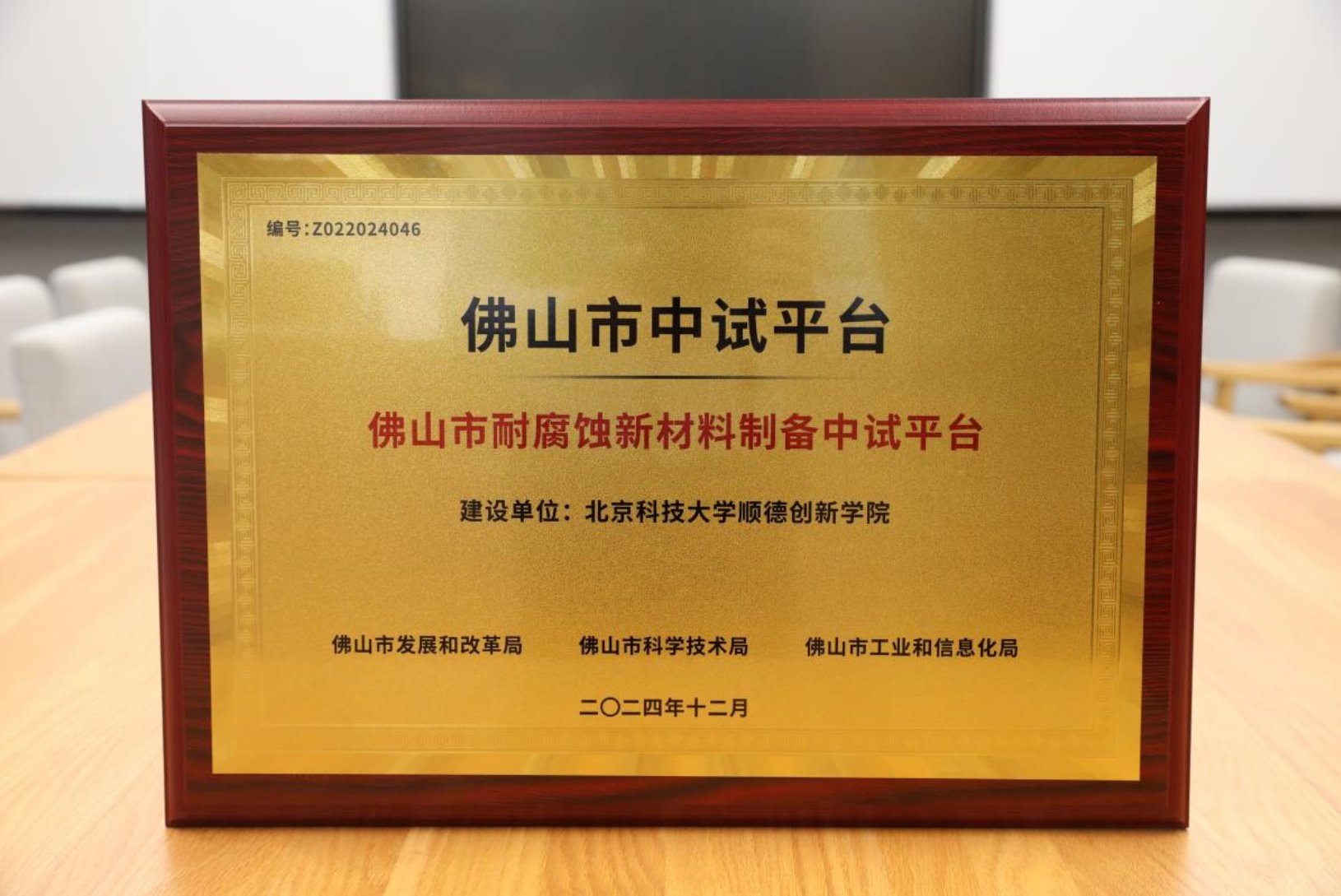 北科大2026年国际足联世界杯“佛山市耐腐蚀新材料制备中试平台”入选市级中试平台